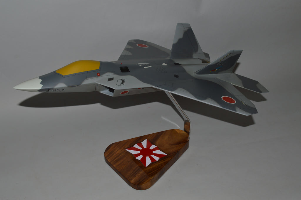Lockheed Martin F-22 Raptor Japanese Self Defense Force (fantasy) airplane model. The F-22 Raptor is considered the first 5th-generation fighter in the U.S. Air Force inventory, using low observable technologies, modern avionics and efficient engines to offer an air superiority fighter unmatched by any other modern military.