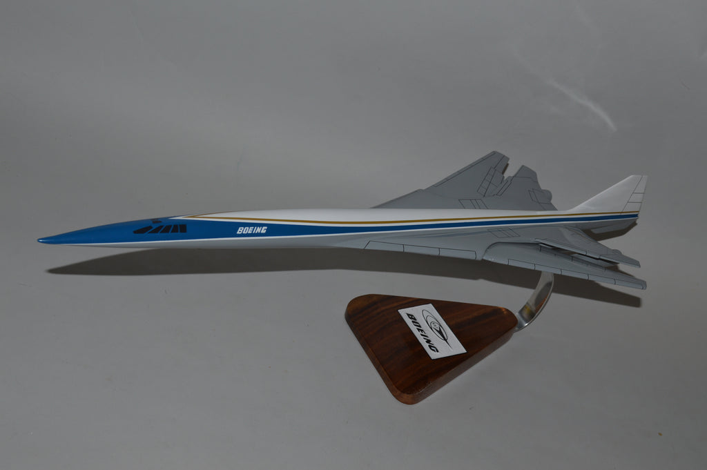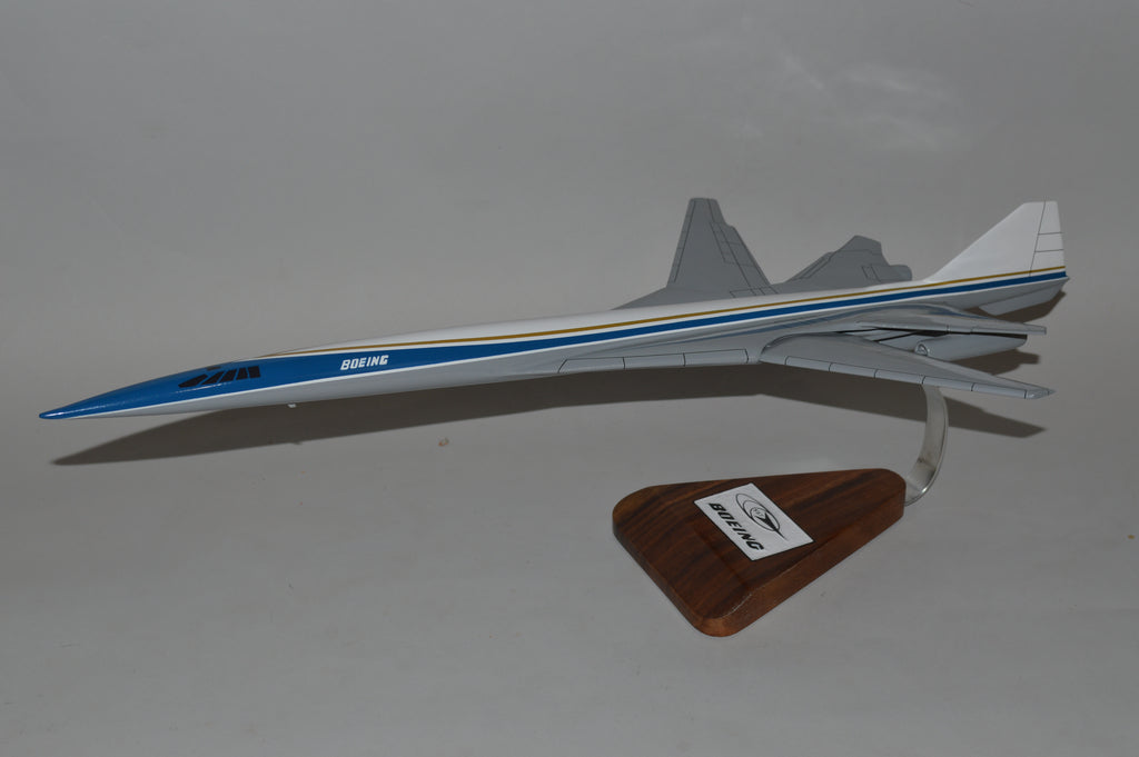 Boeing SST airplane model. The Boeing 2707 was the first American supersonic transport project. After winning a competition for a government-funded contract to build an American SST, Boeing began development at its facilities in Seattle, Washington. The design emerged as a large aircraft with seating for 250 to 300 passengers and cruise speeds of approximately Mach 3. It was intended to be much larger and faster than preceding SST designs such as Concorde.