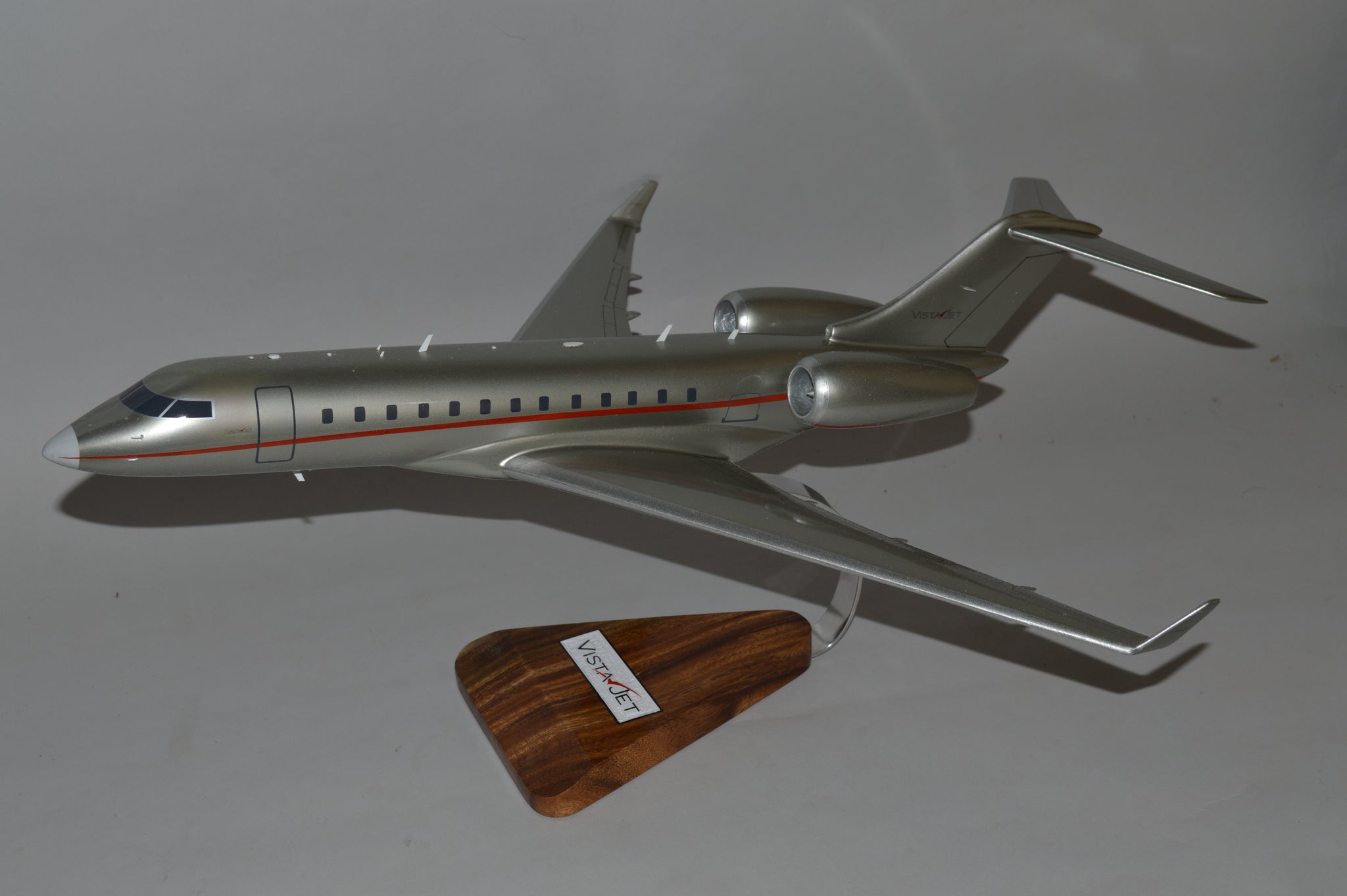 Global 6000 Vista Jet airplane model. Bombardier began manufacturing The Global 6000 Medium Jet in 2012 and continues to do so today. The cabin measures 43.3 feet long by 7.11 feet wide by 6.2 feet tall giving it a total cabin volume of 2476 cubic feet. The dimensions make it comfortable for 17 passengers, with the maximum configuration seating 126. The baggage compartment can hold up to 59 bags, assuming your average piece of luggage is less than 5 cubic feet. The Global 6000 has a maximum range (subject to headwinds, high altitude, hot temperatures, or higher capacity) of 6822 miles and a maximum speed of 548 mph.