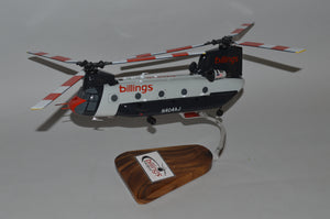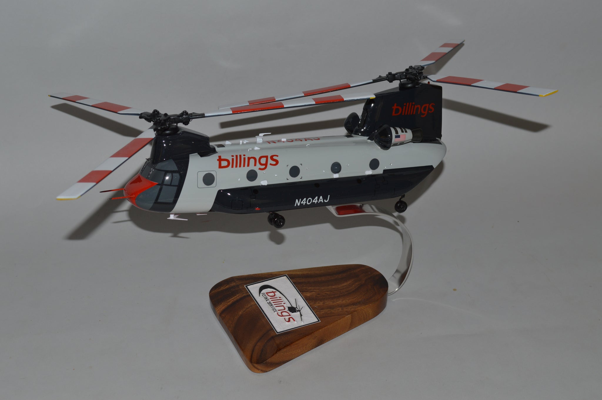 Item Number: 2310CH-47 Chinook Billings helicopter model. The CH-47 Chinook, the workhorse of the US Army, is manufactured by the Boeing Vertol company. The Chinook has served as the prime mover for the US Army and other military forces for decades. Its principal missions include transport of troops, artillery, ammunitions, fuel, water, barrier materials, supplies and equipment on the battlefield. Other missions include medical evacuation, aircraft recovery, firefighting, parachute drops, heavy construction, civil development, disaster relief, and search and rescue. In the US Army National Guard and among international customers, Chinooks often expend the majority of their flight hours on these latter missions.