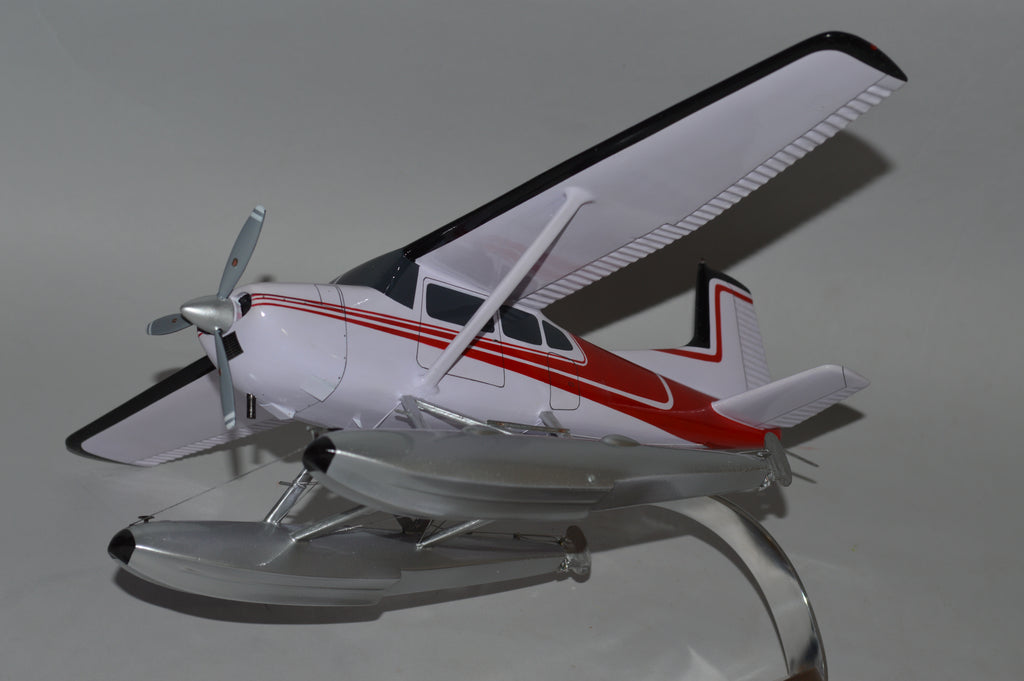 Cessna 185 Floatplane model airplane. The Cessna 185 first appeared in 1961 as an evolutionary follow-on to the popular 180. It's basically a beefed-up 180 with a 260-horsepower fuel-injected Continental IO-470. Adding 30 more horses to the proven design immediately won the attention (and affection) of charter operators needing additional power for floatplanes, high-altitude flight, and heavy hauling.