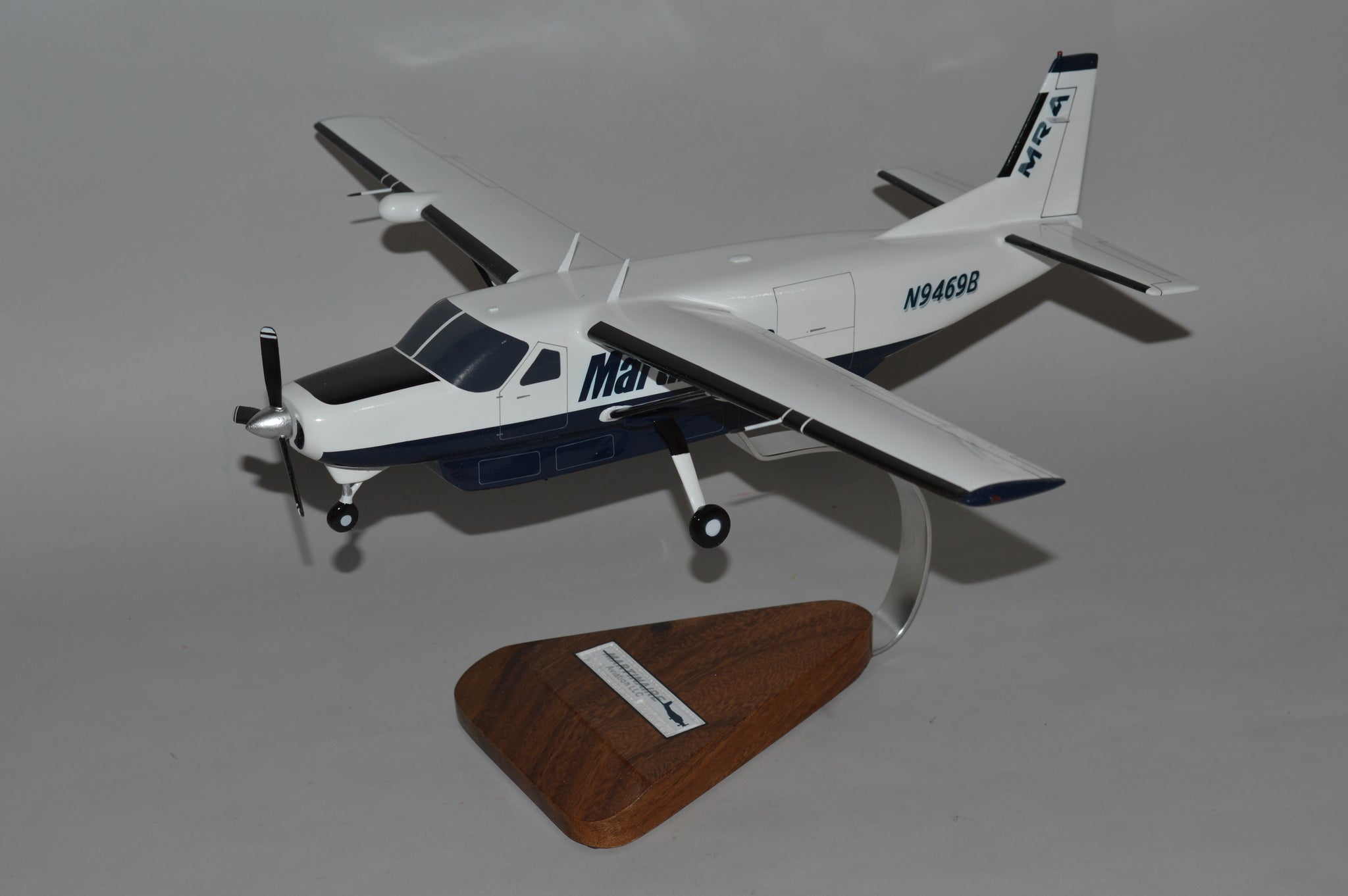 Cessna 208 airplane model. The Cessna 208B Grand Caravan is a single-engine, high-wing turboprop aircraft, known for its durability, impressive payload, and adaptability across a range of missions, including passenger and cargo transport, medical evacuation, and aerial surveys. As an upgraded version of the 208 Caravan, the 208B Grand Caravan features a longer fuselage, larger payload capacity, and increased range, making it highly popular for commuter airlines, charter services, and cargo operations, particularly in remote or rugged areas.